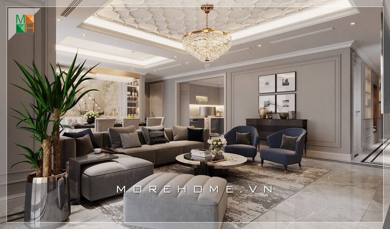 Thiết kế nội thất phòng khách sang trọng và đẳng cấp là những gì Morehome đã mang đến cho gia chủ tại biệt thự Hải Phòng.