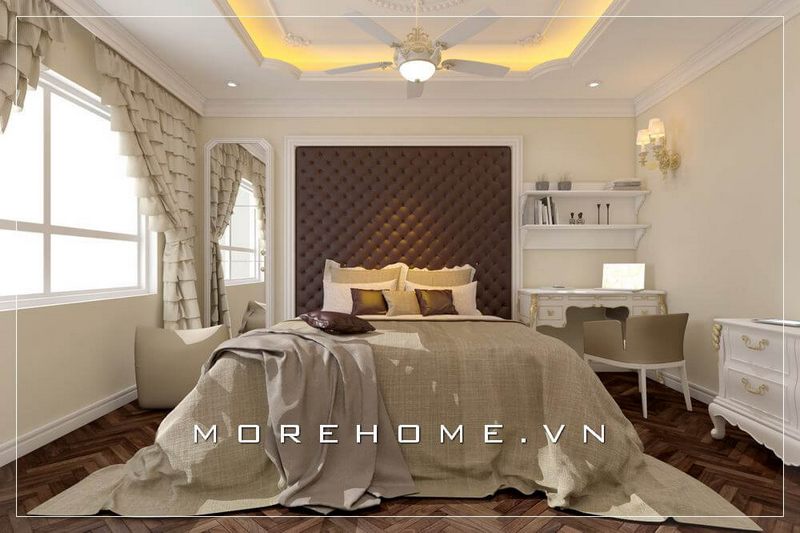 Thiết kế phòng ngủ maste với đồ nội thất màu trắng với kiểu dáng tân cổ điển sang trọng đẳng cấp