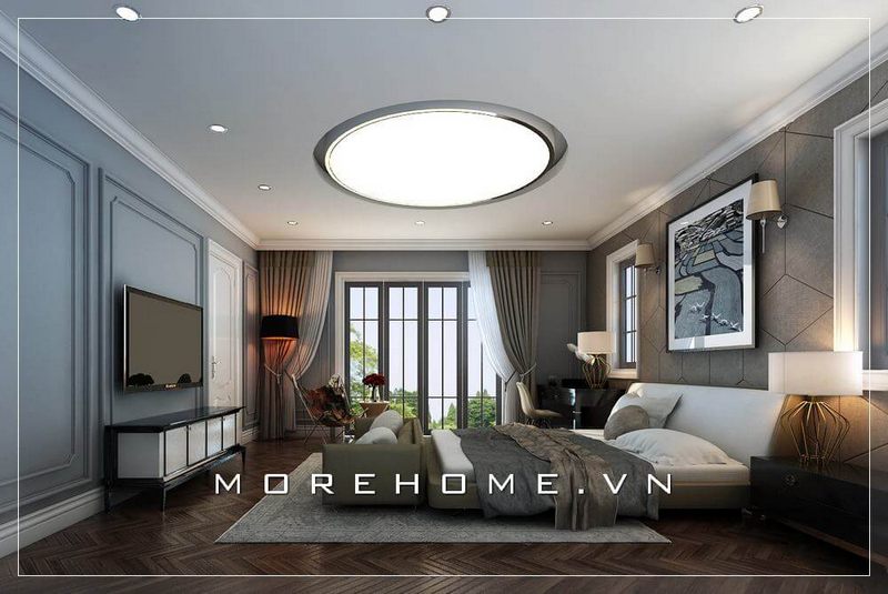 Mẫu thi công nội thất phòng ngủ đẹp với không gian mở phong cách tân cổ điển lược giản