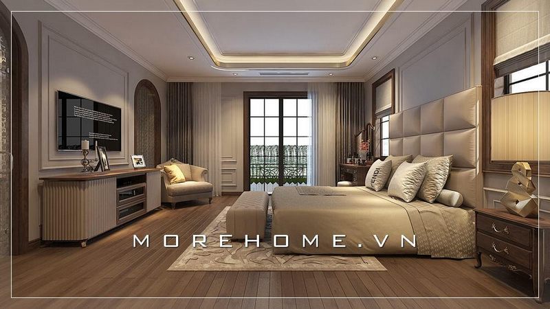 Thiết kế phòng ngủ Master tân cổ điển đầy sang trọng, đây là xu hướng được nhiều gia chủ lựa chọn cho không gian sống chung cư, biệt thự cao cấp