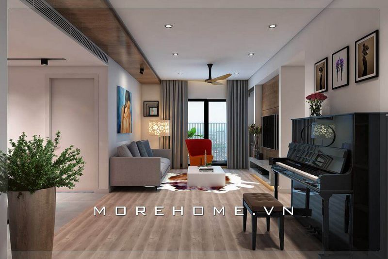 Bố trí nội thất phòng khách căn hộ chung cư hiện đại, đẹp.