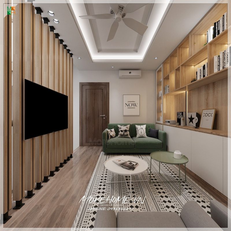 Với không gian diện tích phòng khách vừa phải việc trang trí lựa chọn nội thất phù hợp đem lại sự gọn gàng và vẫn đầy đủ tiện nghi đáp ứng nhu cầu sử dụng