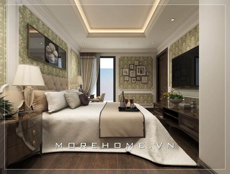 Dựa vào sự bố trí khoa học và hợp lí, không gian nội thất của phòng ngủ Master được trang trí sang trọng, tiện nghi và thoải mái.
