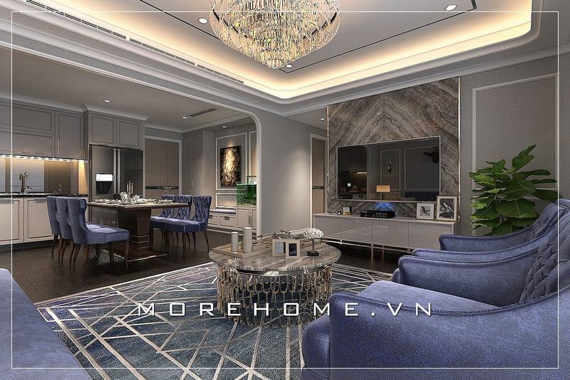 Trang trí phòng khách chung cư cao cấp phù hợp với không gian phòng khách của cả những căn hộ vừa và rộng.