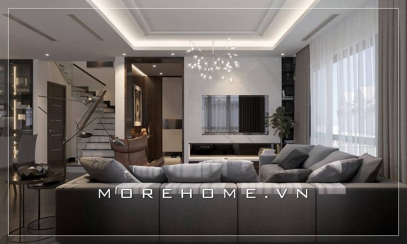 Không gian mở và ánh sáng tự nhiên đang trở thành hai yếu tố quan trọng trong thiết kế phòng khách hiện đại. Kết hợp giữa thiết kế không gian mở với việc tối ưu hóa ánh sáng tự nhiên không chỉ giúp diện tích căn phòng cảm giác rộng rãi hơn mà còn mang đến sự gần gũi với thiên nhiên. Một phòng khách được bao quanh bởi cửa sổ lớn sẽ tràn ngập ánh sáng, từ đó tạo ra bầu không khí tươi mới và năng động cho các hoạt động hàng ngày của gia đình.